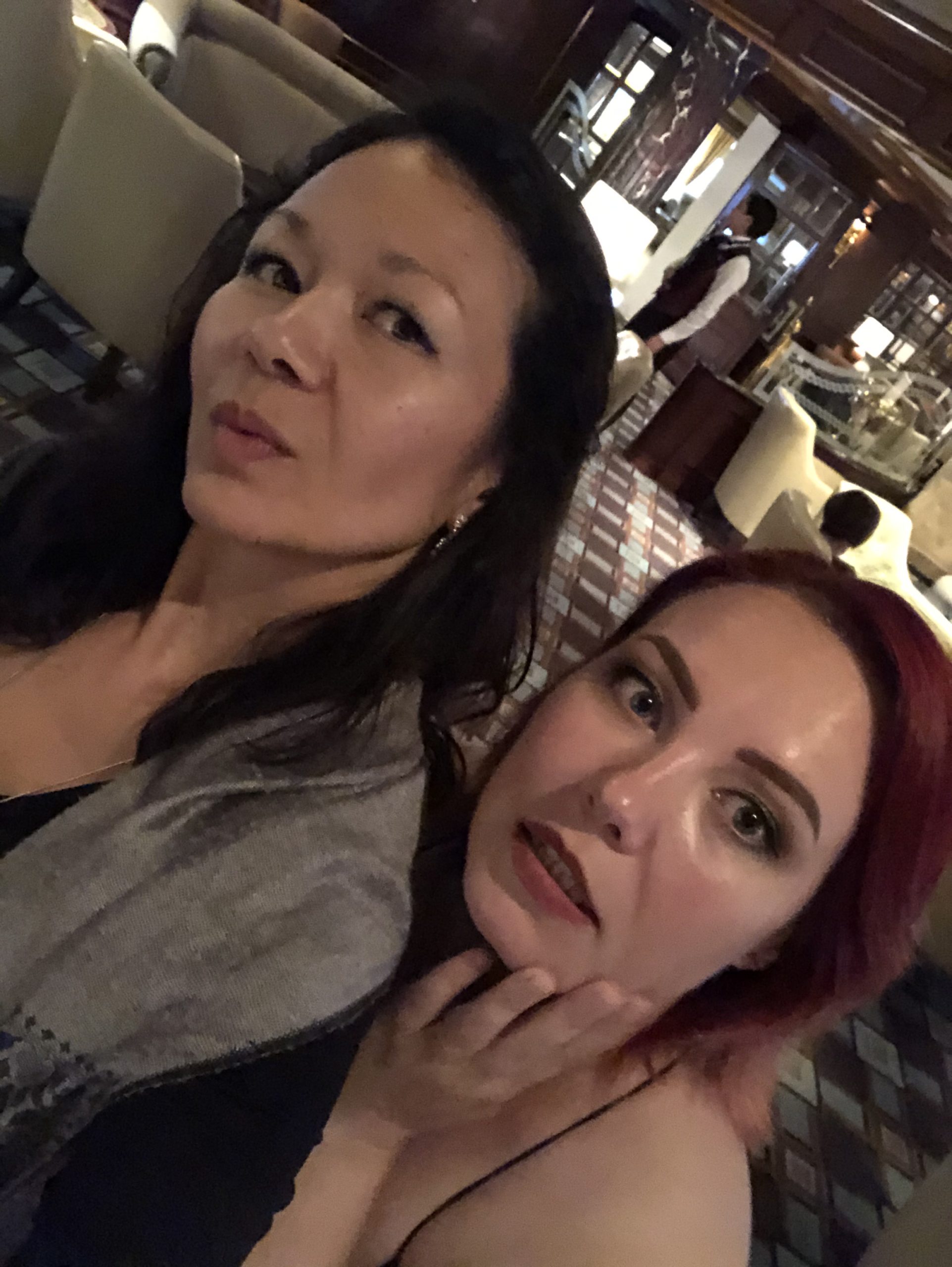 I was impressed when someone would tag me in a group selfie and somehow my skin looked better. “I don’t recall the flash when she took this.” (No, she made sure we were standing next to a bright window with natural lighting when she took the selfie.).